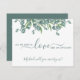 ¡Todo lo que necesitamos es Amor y un oficial! Solicite el servicio de su oficial para su boda con estas modernas pero rústicas tarjetas de eucalipto verde, elegantes tarjetas de ¿Nos casamos?. Estas solicitudes de oficial de eucalipto presentan elegantes hojas de eucalipto salvia, delicada escritura en blanco. Personalice estas invitaciones de boda para el oficial con su mensaje personal. Estas únicas tarjetas de ¿Nos casamos? con vegetación harán una impresión duradera, su sacerdote, pastor o oficial seguramente dirá ¡Sí! DERECHOS DE AUTOR © 2020 Judy Burrows, Black Dog Art - Todos los derechos reservados. Invitación para oficial de boda con eucalipto verde ¿Nos casamos?