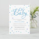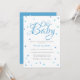Con bonitos corazones de amor azules esparcidos alrededor de tus detalles personalizados en un texto elegante en esta invitación chic para baby shower, fiesta de sprinkles o para parejas. Diseñado por Thisisnotme©