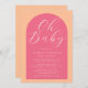 oh baby simple invitación a la ducha de bebé , con un diseño de arco en rosa con un fondo de melocotón. , un diseño moderno y mínimo con detalles hermosos para el texto.