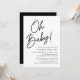 Sencillas invitaciones para una ducha de bebé con "Oh bebé!" mostradas en un audaz guión negro con fondo blanco. Personalice las invitaciones minimalistas a la ducha con el nombre de la madre y los detalles de la ducha. Las invitaciones a la ducha de bebé en blanco y negro se invitan a revertir para mostrar un fondo negro sólido. ¡Las invitaciones son perfectas para las duchas de bebé sin distinción de género!