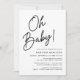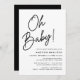 Sencillas invitaciones para una ducha de bebé con "Oh bebé!" mostradas en un audaz guión negro con fondo blanco. Personalice las invitaciones minimalistas a la ducha con el nombre de la madre y los detalles de la ducha. Las invitaciones a la ducha de bebé en blanco y negro se invitan a revertir para mostrar su foto de embarazo y el texto de su personalizado. ¡Las invitaciones son perfectas para las duchas de bebé sin distinción de género!