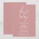 Esta invitación de fiesta de bebé con escritura elegante en rosa polvo de rosa puede ser personalizada con toda la información de su celebración especial. Diseñado por Thisisnotme©