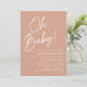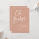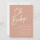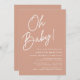 Sencillas invitaciones para una ducha de bebé con "Oh bebé" mostradas en un audaz guión blanco con fondo de terracota rubor. Personalice las invitaciones minimalistas a la ducha con el nombre de la madre y los detalles de la ducha. Las invitaciones a la ducha de bebé de terracota enrojecida se invitan a revertir para mostrar su foto de embarazo y el texto de su personalizado. ¡Las invitaciones son perfectas para las duchas de bebé sin distinción de género!