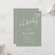 Una moderna minimalista invitación a bañarse todo en uno con un corazón adorable dibujado a mano, código QR del registro y detalles del evento, con una tipografía elegante sobre un fondo verde sabio. Diseñado por Thisisnotme©