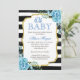 Invitación Oh Baby Shower Blue Floral Gold Bandas Negras