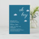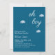 Celebra tu pequeña en el camino con esta encantadora invitación a la ducha de bebé " Oh Boy ". Con un fondo azul dulce con nubes blancas esponjosas y un guión elegante, es la invitación perfecta para una alegre celebración de un bebé. Fácilmente personalizar con los detalles de tu evento y hazlo verdaderamente tuyo.
