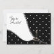 Invite a sus amigos y seres queridos con esta moderna y única invitación a bañarse en una ducha con cremallera en blanco y negro. En el reverso, los puntos de polka le dan un toque retro al diseño moderno.