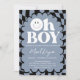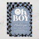 Invitación Oh Boy! Blue Checkered Happy Face Baby Shower