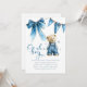 Set the scene for a joyful celebration with these blue jean baby themed baby shower invitations. Featuring an adorable bear in denim dungarees, a sweet denim bow, and playful blue stars scattered across a modern invitation template, they're perfect for honoring the parents to be.