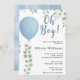 "Oh Boy" Eucalipto Globo Azul INVITACIÓN FOTO para Baby Shower | Invitación Personalizada con Imagen y Follaje para Niño