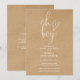 Esta elegante invitación de baby shower rústica con letra kraft de género neutral se puede personalizar con toda la información de su celebración especial con el código QR de su registro y los detalles del evento en el reverso. Diseñado por Thisisnotme©