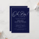 Invitación Oh Boy Modern Script Navy Blue Baby Shower