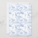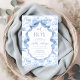 Esta Invitación es una fusión encantadora de elegancia clásica y capricho juguetón. Con un delicado motivo de tela de Jouy en un suave tono azul para bebé, exhibe hermosamente animales de safari de estilo vintage —como elefantes suaves y jirafas grávidas— enclavados entre intrincados elementos florales y botánicos. La delgada gama y la relajante paleta de colores le dan una estética de calidad heirolor, perfecta para una celebración eterna y sentida. Enmarcada con una elegante cinta azul y un arco, y emparejada con una tipografía refinada, esta invitación se siente sofisticada y dulce a la vez. Capta la maravilla de una nueva aventura mientras honra la belleza tradicional, haciendo de ella una encantadora manera de dar la bienvenida a un bebé con calidez y estilo. Elementos coincidentes disponibles.