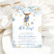 Invitación Oh Boy Winter Blue Floral & Deer Baby Shower