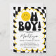 Invitación Oh Boy! Yellow Checkered Happy Face Baby Shower