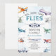 Celebrate your little aviator's big day with this wonderfully playful airplane birthday party invitation! Featuring a charming collection of watercolor aircraft — from commercial jets and vintage propeller planes to colorful helicopters — surrounding a bright, sky-blue "Oh, How Time Flies" headline. The soft watercolor style and airy white background create a fresh, cheerful look perfect for any transportation or aviation-themed birthday celebration.
