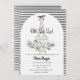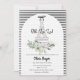 Esta elegante ducha de color blanco y negro inspirada en Oh La Paris, será el comienzo perfecto para tu ducha de bebé de temática francesa. Con la Torre Eiffel, un moderno arco y una flor acuarela. Una romántica invitación neutral de género a una ducha de bebé en París.