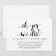 Tarjeta de invitación de boda con tema de guion moderno (Oh sí, lo hicimos). Es perfecta para su cena de boda informal junto al lago, baile y fiesta de fuga de novios.