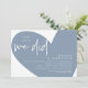 Anuncie y comparta su gusto por el estilo con nuestro azul polvoriento moderno, con diseño de fondo de forma de corazón lindo (Oh Sí lo hicimos) boda de la tarjeta de invitación a la celebración de la celebración de la salida. Es ideal para las parejas que han decidido celebrar su mejor día. Con un diseño sofisticado pero lúdico, esta invitación seguramente marcará el tono para un evento inolvidable. La tarjeta de invitación incluye un diseño de escritura moderno y minimalista, añadiendo un toque de elegancia eterna a tu celebración. Diseñado por TeeshaDerrick