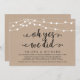 Hermosas Luces de Cadena de Granja Rústicas Modernas, fuente de letra negra en fondo de papel Kraft, Anuncio de Elopamiento de Boda, tarjeta de invitación (oh sí, lo hicimos). Esto es perfecto para la recepción de su boda y la fiesta de celebración después de la boda. Agregue sus detalles en la fuente / letra coincidente.