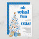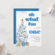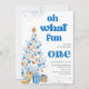 Invitación Oh what fun Blue tree christmas birthday