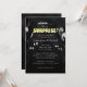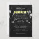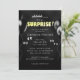 Esta invitación de fiesta personalizada presenta un tema de fiesta sorpresa divertido. Ojos de dibujos animados divertidos de diferentes formas se colocan a ambos lados del área de texto sobre un fondo negro para representar una habitación oscura con las luces apagadas. Globos de fiesta negros se colocan a ambos lados de la invitación para parecerse a sombras de globos. Es perfecto para una bienvenida en casa, fiesta de cumpleaños u otra ocasión especial.