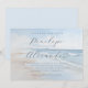 Esta invitación de boda presenta una serena escena de playa con colores pastel suaves que se mezclan perfectamente, creando una atmósfera tranquila y romántica. El diseño muestra gradientes suaves de azul claro que pasan a tonos rosa pálido y melocotón cerca del horizonte, evocando la belleza del amanecer o el atardecer sobre el océano. La tipografía de letra cursiva elegante destaca los nombres "Penelope" y "Alexander", mientras que los detalles adicionales se presentan en una mezcla de fuentes serif, lo que garantiza la legibilidad en el fondo soñador. Perfecta para parejas que buscan un tema natural y elegante, esta invitación establece el tono para una celebración tranquila junto al mar.