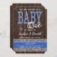 Invitación Old Wood Blue Gingham Boy Baby Shower BBQ