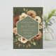 Experience a warm and moody romance with this stunning botanical arrangement. Set against a deep olive green background, lush painterly blooms in shades of amber, cream, and burnt orange create a rich, autumnal atmosphere. Delicate green foliage intertwines throughout, completing this elegant and sophisticated design for a vintage-inspired affair.