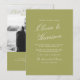 Olive estate photo wedding invitations designed for a refined European garden celebration. Featuring a soft olive background paired with elegant calligraphy and a modern photo layout, this invitation blends 2026 Herb Green trends with timeless manor sophistication. Perfect for outdoor ceremonies, Tuscan-inspired venues, and romantic estate weddings. Showcase your engagement photo while maintaining a classic aesthetic. Personalize to create a cohesive, heirloom-inspired suite.