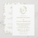Invitación Olive Green Floral Line Art Monogram Crest Wedding