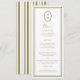 Invitación Olive Green Monogram Long Wedding Menu Card