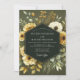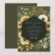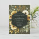 Embrace a sophisticated, moody ambiance with this elegant botanical design. A lush arrangement of buttery yellow roses, creamy white anemones, and golden wildflowers blossoms against a deep olive green backdrop. Soft, muted green foliage complements the blooms, creating a rich, artful composition perfect for a rustic or autumn union.