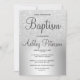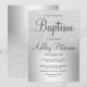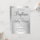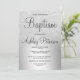 Un diseño chic y lujoso de ombre de purpurina plateada con tipografía caligráfica elegante para un bautizo.