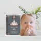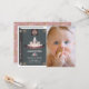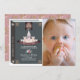 Esta tierna invitación para una foto de primer/primer cumpleaños del chica "una vez a la vez" incluye un libro negro diseñado con un castillo. En el reverso, un fondo rosa con motivos florales. Personalízalo para tus necesidades.