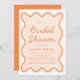 Adéntrate en un mundo de encanto retro con nuestra invitación de Desayuno Nupcial Wavy Modern Curvy Retro Peach Fuzz. Este diseño único y elegante combina líneas onduladas y curvas con un delicioso tono rosa melocotón retro, creando una invitación que es a la vez divertida y chic.
