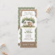 This adorable design features a sweet bear relaxing by a camper surrounded by soft woodland trees, creating a warm and nature-inspired atmosphere. The “Admit One” ticket layout adds a fun and unique touch that makes the invitation feel like a special event pass.