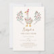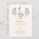 Carta de invitación a la fiesta de cumpleaños con tema de ganso dulce que incluye un lindo ilustracion de ganso con un gorra fiesta y un collar de espuma de corona con botánicos de bayas rojas. El texto dice "¡XX es una gallina de los huevos!"