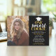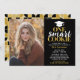 Una Invitación de Graduación Temática de Cookie Inteligente — Un tema de moda de la caligrafía de rebote con una foto a un lado. La parte trasera de la invitación tiene un patrón moderno de media luna. Añade cualquier año para mostrar este diseño elegante y de moda. Esto se puede usar para cualquier graduado - escuela secundaria, universidad, escuela de posgrado, escuela de medicina o incluso escuela de comercio.