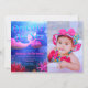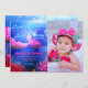 Esta invitación utiliza el azul y el rosa como paleta de colores principal. Se presta atención a la profundidad en el diseño haciendo que los peces parezcan muy lejos del punto de vista focal principal. Se utilizan efectos de iluminación especialmente en la cola de la sirena, para hacer que sea la estrella del diseño