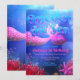 Esta invitación utiliza el azul y el rosa como paleta de colores principal. Se presta atención a la profundidad en el diseño haciendo que los peces parezcan muy lejos del punto de vista principal. Se utilizan efectos de iluminación especialmente en la cola de sirena, para hacer que sea la estrella del diseño