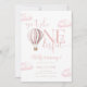 Invitación Onederful globo aerostático rosa niña cumpleaños 1