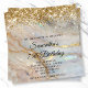 Una glamorosa invitación por su 75 cumpleaños. Cambie el evento a cualquier año o celebración de cumpleaños. Purpurina de oro fino y brillante en contra de una falsa imagen gráfica de arte digital de oro opal de mármol. El texto se puede personalizar. Todos los brillantes y dorados brillantes en este moderno diseño de chicas se crean con gráficos de arte digital impresos.
