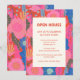 Invitación Open House Tropical Floral Pink Red Housewarming