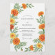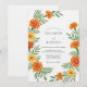 A vibrant display of marigolds and lush green foliage creates a warm, botanical atmosphere. The striking orange and yellow hues evoke a feeling of joyful celebration and natural beauty. This design is perfect for an autumnal or summer occasion seeking a touch of organic elegance.