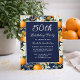 Invitación Oranges White Flowers Navy Blue 50th Birthday