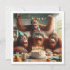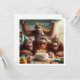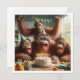Una invitación realmente genial que representa orangutanes sentados en una mesa de cocina que celebra con una torta de cumpleaños y gorras fiestas, una gran invitación para los amantes de los orangutanes, los amantes del simio y los amantes del zoo. La tarjeta puede ser completamente editada y personalizada para satisfacer sus necesidades.