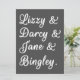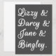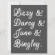 Un diseño lindo, perfecto para cualquiera que ame las novelas de Jane Austen. Parejas de Orgullo y Prejuicio "Lizzy & Darcy & Jane & Bingley" con un fondo gris. ¡Acentúa tu estilo y espacio con este bonito arte!