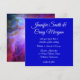 Una bella invitación a la boda con fotos espaciales. Personalizar la información de la invitación para sus necesidades. Hay un brillante filtro de estilo sombrío aplicado a esta foto usando el sistema que crea colores rosados y brillantes de zafiro o azul cobalto. El filtro se puede personalizar para crear su propia invitación única. Puede conservar, eliminar o cambiar todos los campos de plantilla de texto. En la nebulosa predominan el zafiro, el cobalto, el azul, el agua, la lavanda, el blanco y el rosa cálido.