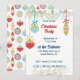 Manténgalo sencillo y elegante con esta invitación de fiesta Navidad que tiene un ambiente de vacaciones retro. Está diseñado con tres simples adornos de árbol de estilo rojo vintage en cintas y un colorido patrón de repetición a juego en la parte posterior. Simplemente edite todos los detalles de su fiesta y seleccione su elección de estilos de papel.